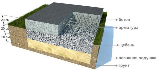 Если для мощения будут использоваться плиты, то фундамент под них делают из слоя щебня толщиной около 10 см и слоя крупного песка толщиной 5 см. Для настила из дерева, кирпича или блоков готовят песчаное основание слоем до 10 см. Фундамент должен выходить за границы патио на 8—15 см.
