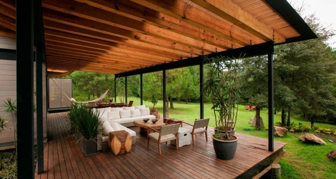 Терраса у дома не обязательно должна быть построена из дерева. С давних пор в странах Средиземноморья получило широкое распространение патио — примыкающая к дому мощеная площадка для отдыха и приема гостей. Это может быть совсем маленький, выложенный плиткой участок с пластиковым столиком и парой стульев. Бывают и многоярусные патио с клумбами, водоемами, перголами и постоянной мебелью. Однако и в том, и в другом случае патио — это «комната под открытым небом», которая связывает дом с садом и служит переходной зоной между ними, является излюбленным местом для проведения досуга всей семьи.