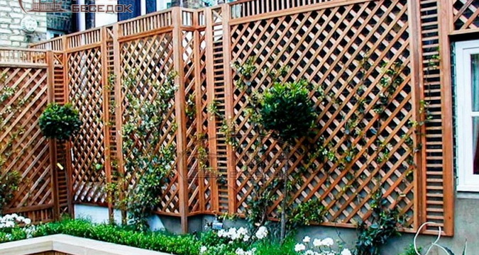 Чтобы при взгляде на примыкающую к патио стену дома взгляд не упирался в голый кирпич, прикрепите на стену шпалеру или натяните проволоку для вьющихся растений. Место для отдыха можно обсадить однолетними или многолетними вьющимися растениями, устроить живую изгородь, установить экраны для защиты от посторонних глаз и ветра.