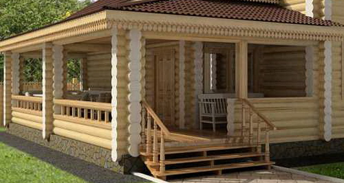 Так, в рубленых домах веранду сооружают в виде сруба, установленного рядом с основным домом. Если ее рубят одновременно с основными стенами, то ее крыша, как правило, бывает односкатной и может являться продолжением крыши основного дома. Для кровли обычно подбирают тот же кровельный материал, что и для основного дома.
