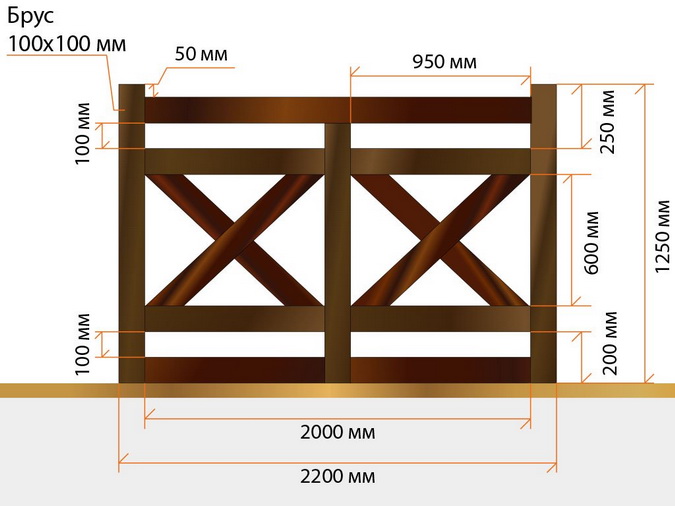 Ограждение изготавливают отдельными секциями и крепят наклонно забиваемыми гвоздями к стойкам и доске поручня. Секции собирают из досок сечением 70 х 16—22 мм, скрепляемых с двух сторон горизонтальными связями (бруски 45 х 22 мм). На кромках брусков предварительно снимают фаску.