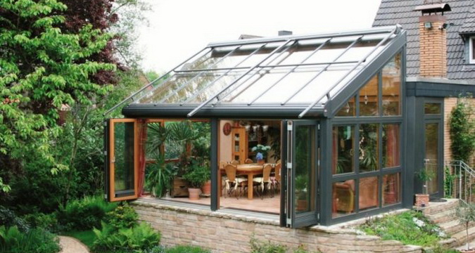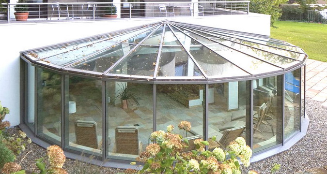 Кроме того, зимний сад, пристроенный к дому, не обязательно располагать с солнечной южной стороны. Ведь здесь летом такое мощное световое облучение, что дополнительно может потребоваться и недешевая вентиляционная система. В этом смысле интересную альтернативу представляет собой северный фасад. К тому же в этом месте сам зимний сад будет являться своеобразной буферной зоной, защищая здание от холода и ветра.