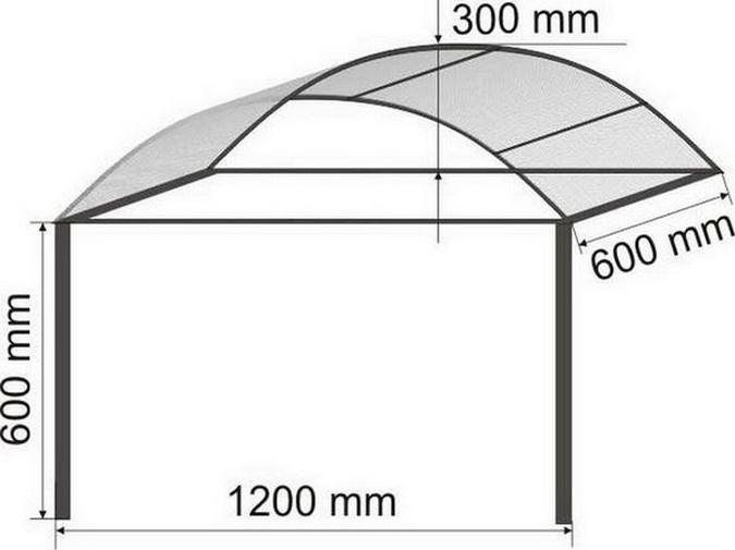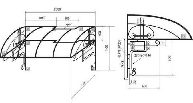 Если вы желаете, чтобы козырек выглядел более изысканно, задачу можно слегка усложнить. Основное отличие заключается в необходимости изгибать профили.