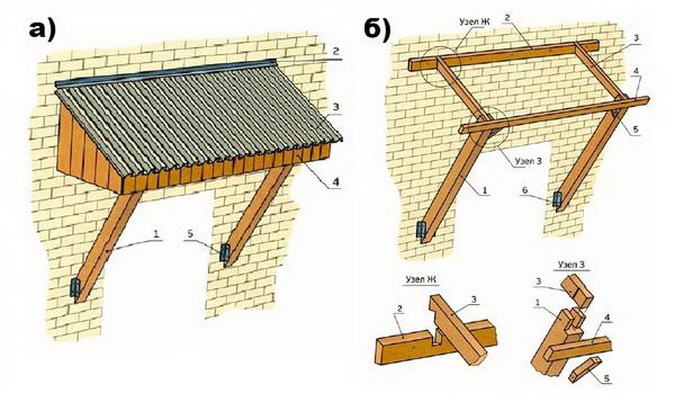 При выборе типа козырька или навеса к дому каждый хозяин идет своим путем, учитывая собственные возможности, вкус, предпочтения и местные традиции. Но даже самая простая конструкция навеса оставляет широчайшие возможности для выбора материалов, способов их обработки, крепления и соединения деталей, окончательной отделки и оформления наружных элементов, что и позволяет придать своеобразие каждому дому.