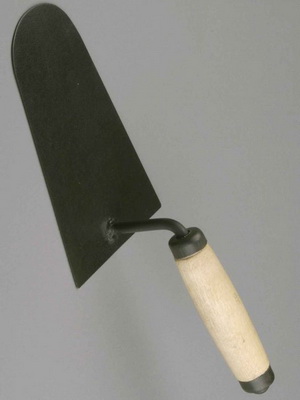 Растворная лопатка предназначается для перемешивания раствора в ведре. С ее помощью раствор также подается на стену и расстилается сразу для нескольких кирпичей.