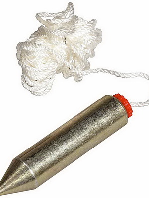 Отвес представляет собой заточенный с одной стороны на конус металлический цилиндр с прикрепленным шнуром. Он служит для проверки вертикальности стен и углов.