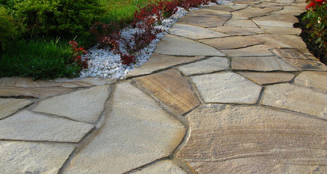 Впрочем, искусственный камень сегодня все больше набирает популярность — он легче, проще в обработке и зачастую представлен в более широком выборе по цвету и форме, а также его можно заказать отдельно, но уже с нужными вам характеристиками, а способ укладки дорожек будет в обоих случаях один и тот же.
