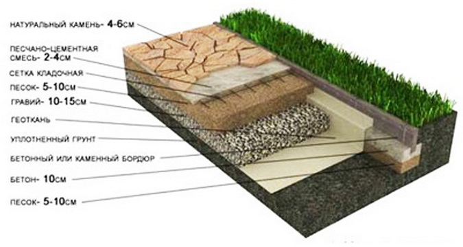 - непосредственно на песчаную подушку — подходит только для дорожек под небольшую нагрузку, впрочем, пешеходные дорожки на индивидуальном участке чаще всего именно такие.