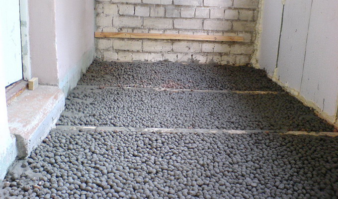Поднять пол на балконе желательно керамзитом, благодаря его легкому весу.
