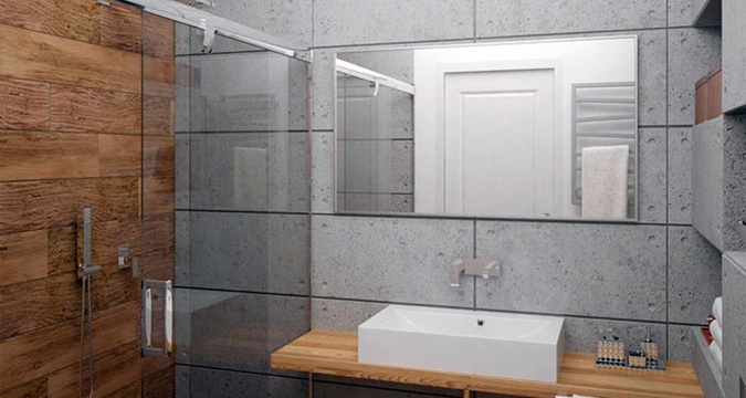 Серые стеновые панели с эффектом вощеного бетона. Доступные в нескольких серых палитрах, настенные панели с эффектом вощеного бетона придают ванной комнате строгий, элегантный и неподвластный времени вид.