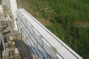 Возведение стен из шлако- и керамзитобетонных блоков избавляет застройщика от дополнительного армирования. При использовании пенобетонных блоков верхнюю часть стены перед установкой железобетонных плит перекрытия необходимо армировать железобетоном. Если решено использовать деревянное перекрытие, надобность в дополнительном армировании отпадает.