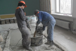 Сначала сухие составляющие в правильных пропорциях хорошо перемешиваются, а затем в смесь добавляется вода.