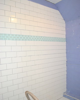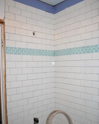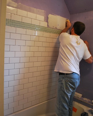 Облицовки плиткой на примере обычной ванной комнаты в многоквартирном жилом доме. Перед началом облицовочных работ стены комнаты обклеивают влагостойкими гипсокартонными листами, которые сделают поверхность ровной. Стены можно выровнять и с помощью штукатурки. Полы также выравнивают путем укладки стяжки. Схему укладки плитки выбирают стандартную с фризом.