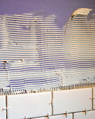 - клеящая строительная смесь, соответствующая материалу поверхности облицовки (бетон, дерево, кирпич, металл, стекло, фанера и т. д.), а также параметрам самой плитки (в соответствии с рекомендациям производителя и условиями эксплуатации помещения);