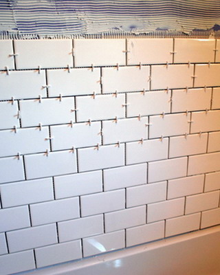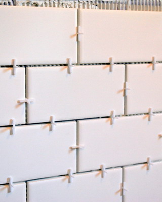 При облицовке стен плиткой «в перевязку» каждую плитку вышестоящего ряда кладут таким образом, чтобы ее середина оказалась точно над швом, разъединяющим плитки нижнего ряда. В этом случае некоторая разница в размерах плитки не играет особой роли.