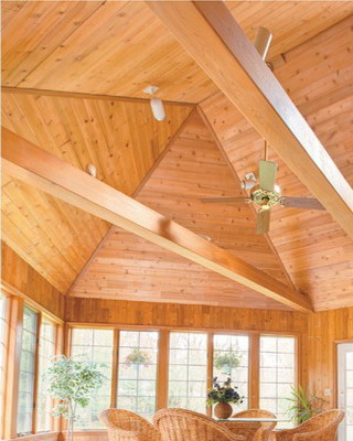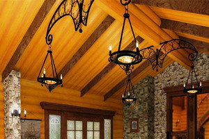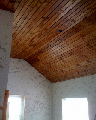 Дерево — достаточно дорогой, но очень изысканный материал для отделки, который используется и для создания интерьеров в стиле кантри, и для отделки роскошных апартаментов. Для этой цели пригодны самые разнообразные сорта древесины — от простой сосны до экзотических (тропических) деревьев. Обшивка потолка вагонкой позволяет создавать различные интерьеры.