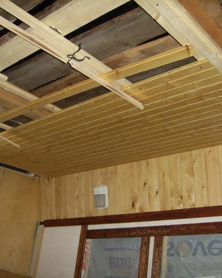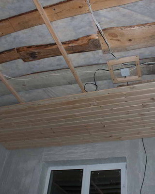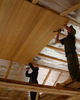 Облицевать потолок вагонкой можно самостоятельно, без привлечения специалистов. При этом работы можно вести без предварительной подготовки поверхности потолка. Пожалуй, единственная сложность такого оформления потолка состоит в необходимости надежного закрепление элементов каркаса.