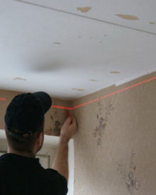 Перед монтажом элементов каркаса необходимо сделать по периметру помещения разметку уровня подвесного потолка. Затем на потолке (строго по центру помещения) проводят осевую линию. Параллельно ей (слева и справа) на заданном расстоянии проводят прямые, вдоль которые, будут закреплены основные профили каркаса. На полученных линиях отмечают места крепления подвесов.