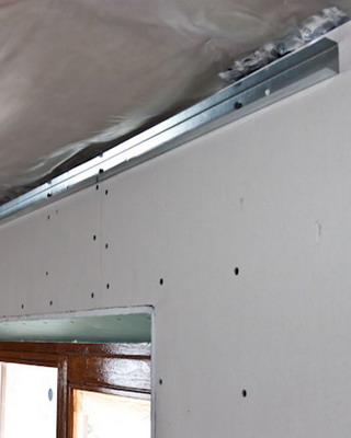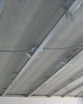 Облицовка потолка гипсокартоном начинается с итого, что проводится крепление материала к каркасу из металлических профилей. Пожалуй, единственная разница в облицовке стены и потолка состоит в том, что в последнем случае крепежные изделия испытывают значительно, большие выдергивающие усилия. Поэтому для крепления профилей нужно применять только распорные дюбели или шурупы, а расстояние между профилями должно быть меньше, чем для стен.