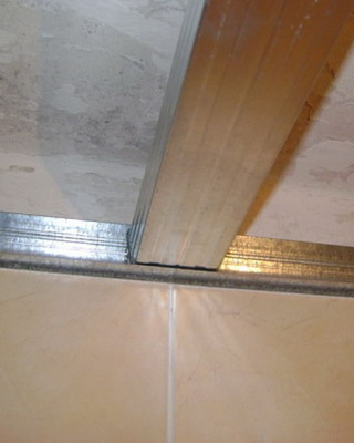 Иногда в одноуровневом каркасе могут отсутствовать основные профили, и тогда концы несущих профилей вставляют в расположенный по всему периметру помещения потолочный направляющий профиль (ПНП 28/27).