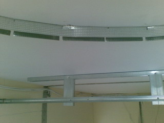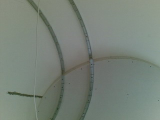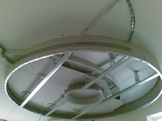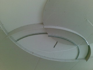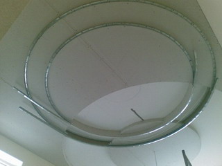 Монтаж потолка, содержащего криволинейные элементы, следует начинать с традиционной разметки. При этом необходимо обратить особое внимание на точность позиционирования, а также на правильность проектирования мест установки светильников — любые отклонения и неточности обязательно будут подчеркнуты игрой света и теней.