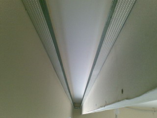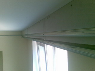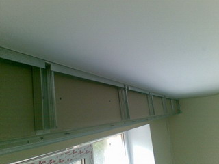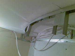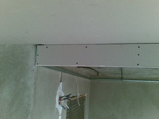 Далее представлена технология многоуровневых потолков, которые можно использовать в различных помещениях. Принцип установки потолка такого типа рассмотрим на примере наиболее простой конструкции — прямолинейного короба, проходящего вдоль всего периметра потолка. Ширина короба обычно берется равной 400—500 мм, а высота — в зависимости от дизайн-проекта и расположенных в запотолочном пространстве коммуникаций.