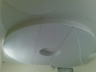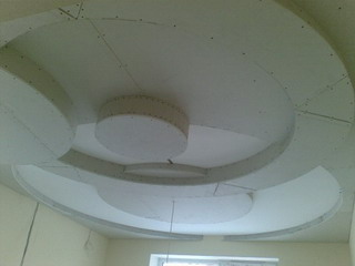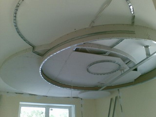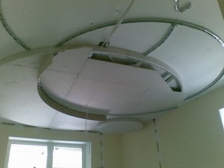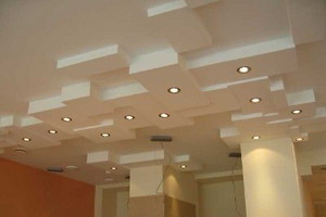 Создание многоуровневых подвесных потолков открывает большие возможности для решения архитектурных и дизайнерских задач. «Податливость» гипсокартона позволяет создавать потолки с причудливыми криволинейными и трехмерными формами, то есть своды и купола, изогнутые фризы, углубленные и выпуклые участки сложной формы. А если помещение имеет большую площадь, многоуровневый потолок поможет создать видимость разграничения жилых зон. Опускаясь или поднимаясь, потолок как бы дает понять, что в этом месте гостиная переходит в обеденную зону, прихожую или кухню.