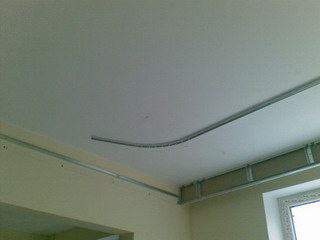Если перепад уровней в многоуровневых потолках не очень велик (50—100 мм), конструкцию ступеньки (как прямой, так и криволинейной) можно существенно упростить. Для этого вместо монтажа сложного каркаса из ГГНТТ и ПП можно использовать лишь направляющие профили, которые выпускают разными сечениями, что позволяет создать каркасы многоуровневых потолков толщиной 50, 65, 75 и 100 мм. При необходимости создать каркас для криволинейного элемента направляющий профиль подготавливают по следующему правилу: при большом радиусе изгиба или формировании вогнутой дуги его стенки просто надрезают, а при малом радиусе и выгнутой форме в них делают треугольные вырезы.