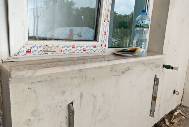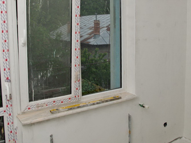 Не ошибитесь с длиной, подоконник должен иметь размер в длину немного шире оконного проёма и выступать с каждого края на 3-4 см. Это делается для того, чтобы впоследствии откосы пластикового окна полностью могли перекрыть резаные края подоконника.