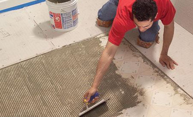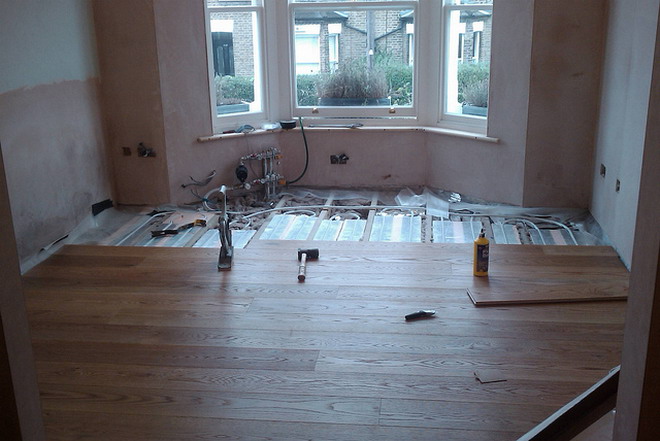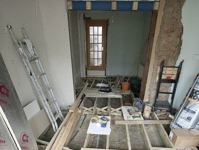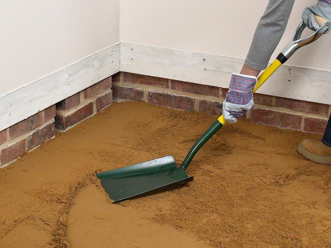 Первым делом, необходимо снять старое половое покрытие (кроме керамической плитки, если пол застелен был именно ею). Затем зачищается, вымывается и освобождается от пыли и грязи бетонная основа.