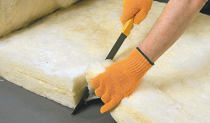 Режут минеральную вату обычным острым ножом или ножницами, раскатав рулон на полу.