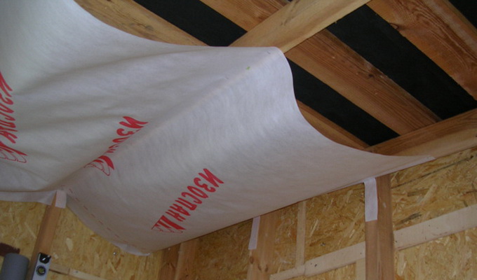 Поверх минеральной ваты (стекловаты) укладывают слой ветрозащитной пленки, которая не только дополнительно теплоизолирует, но и предохраняет сам утеплитель от разрушения (выноса волокон) и защищает его от сырости и скопления конденсата.