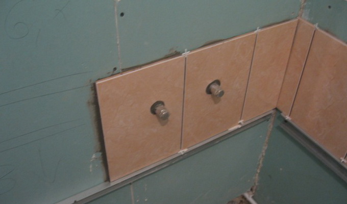 Если решено помещения с повышенной влажностью отделать керамической плиткой, то ее можно клеить, нанося водоотталкивающие клеящие составы непосредственно на влагостойкий гипсокартон.