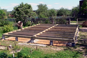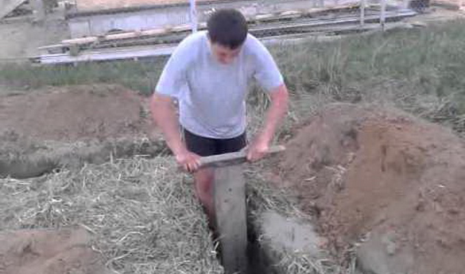 При строительстве хозяйственных деревянных построек фундаменты небольшого заложения (неглубоко в грунт) допускается устраивать без котлована и опалубки, сразу в грунт.