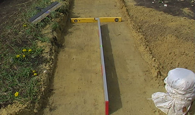 С помощью рейки или правила окончательно выравнивают поверхность песка.