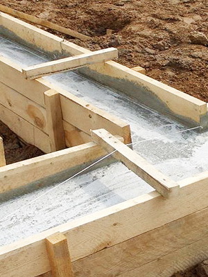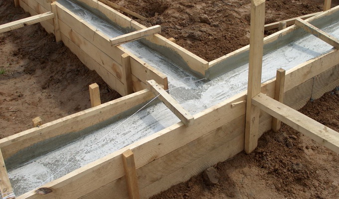 Опалубка — форма, в которую заливается бетон до затвердевания. Она может быть съемной (убирается) и несъемной (остается в теле бетона). Ее собирают из деревянных досок, металлических листов, пластмассы и гипсокартона. Самый экономичный и простой вариант устройства опалубки под фундамент — сделать её из толстых досок и закрепить их с помощью стоек размером не менее 4 см. На дно опалубки укладывают деревянные бруски толщиной 3,5-5 см, на них — слой арматуры и заливают бетоном.