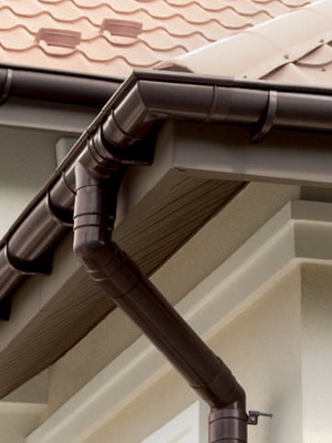 Именно поэтому для металлических фальцевых кровель или металлочерепицы более целесообразно покупать оцинкованный водосток: ведь снег с этих поверхностей сходит, как лавина.