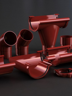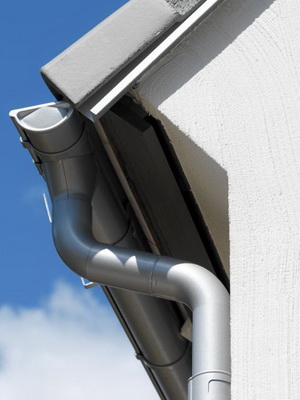 Водостоки из пластика в среднем на 30-50 % дешевле водостоков из оцинкованной стали с покрытием (систему без защитного покрытия лучше не покупать — она недолговечна, либо ее придется покрывать защитным слоем самостоятельно). Он просто монтируется, не шумит, не подвержен коррозии, хорошо переносит агрессивное воздействие окружающей среды (заводские выбросы, морской климат и т. п.).