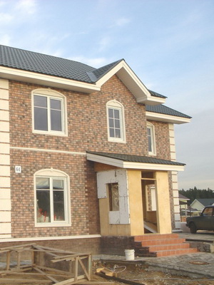 Посмотрите поэтапные фото отделки фасада дома кирпичом: