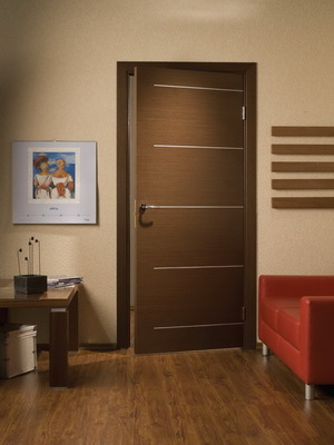 Шпонированные двери внешне схожи с массивом, а цена у них ниже. Двери, покрытые ламинатом, еще дешевле.