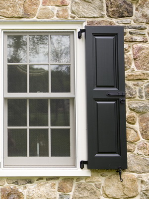 Ставни — также элемент декора жилого дома. Для их закрепления при устройстве оконных проемов вбивают кронштейны из уголка 50×70 мм и длиной, соответствующей толщине стены (без облицовки).