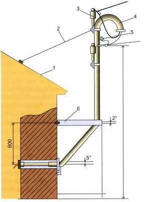 Трубостойки-гусаки изготавливаются из тонкостенной стальной трубы с внутренним диаметром в 1,5-2 раза большим внешних габаритов электрического провода, но не менее 15 мм, и бывают двух типов: для крепления на стене и для установки на крыше.