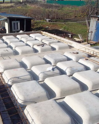 Толщина плит — от 30 см. Нижний слой армируется сетками и дополнительными стержнями рабочей арматуры, верхний — арматурными сетками (стержни меньшего сечения, чем в нижнем поясе). В теле плиты устраивают пространственные каркасы.
