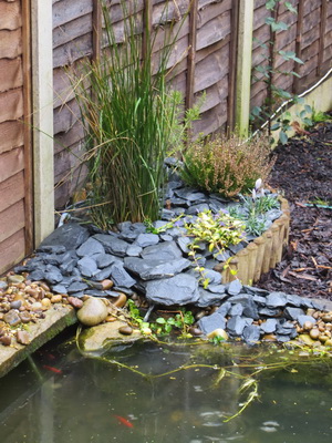 Дизайн террасы к дому: водоем и садовые фигурки