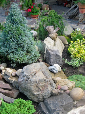 Это может быть яркий пышный цветник, розарий, ваша коллекцию необычных растений, композиция с садовыми фигурками, садовая скульптура, альпийская горка, прудик, сад камней.