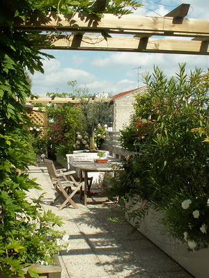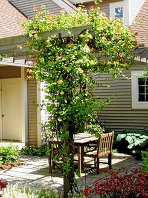 Сочетайте на террасе разных типов ажурных «стен», например, шпалера и арка, пергола и арка, арка и колонны, шпалера и пергола, и т. д.