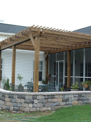 Терраса — это мощеная площадка, высокая или на уровне отмостки, с крышей или без. Однако крышу устроить все же желательно, поскольку терраса достаточно большой архитектурный объект, и без крыши он смотрится незаконченным. Ну и, конечно, хочется использовать террасу в любую погоду. По тем же самым причинам, хорошо бы сделать террасе 1-2 стены.