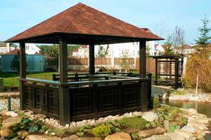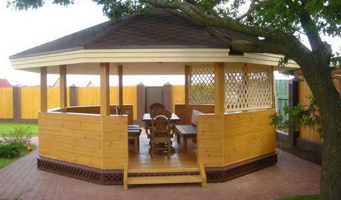 Поначалу определяют месторасположение беседки, рассчитывают внешние габариты и выбирают форму конструкции. Обычно беседку устанавливают в местах отдыха: на детской площадке, у бассейна, в центре сада или недалеко от летней кухни, поближе к зелени, в тени.