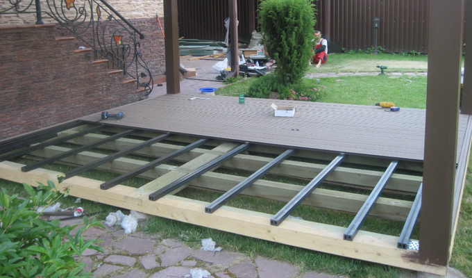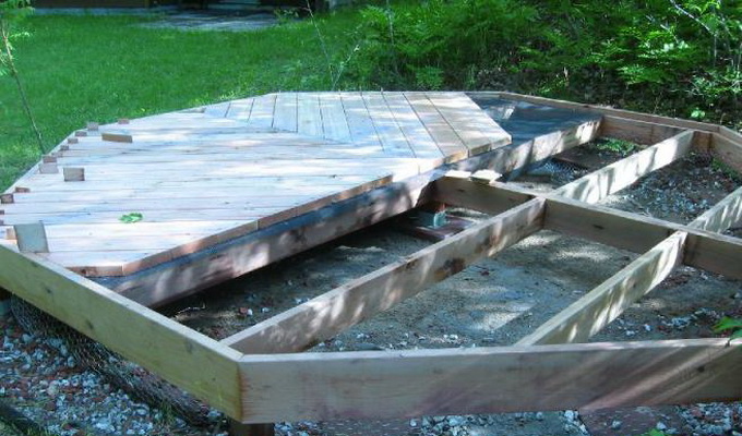 Точно так же настилают пол и располагают балки в беседках с многоугольными основаниями.