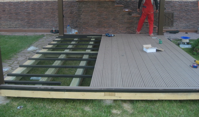 Теперь пришел черед определиться, какой пол сделать в беседке: основание постройки тоже может служить полом, а можно дополнительно застелить его доской или плиткой.
